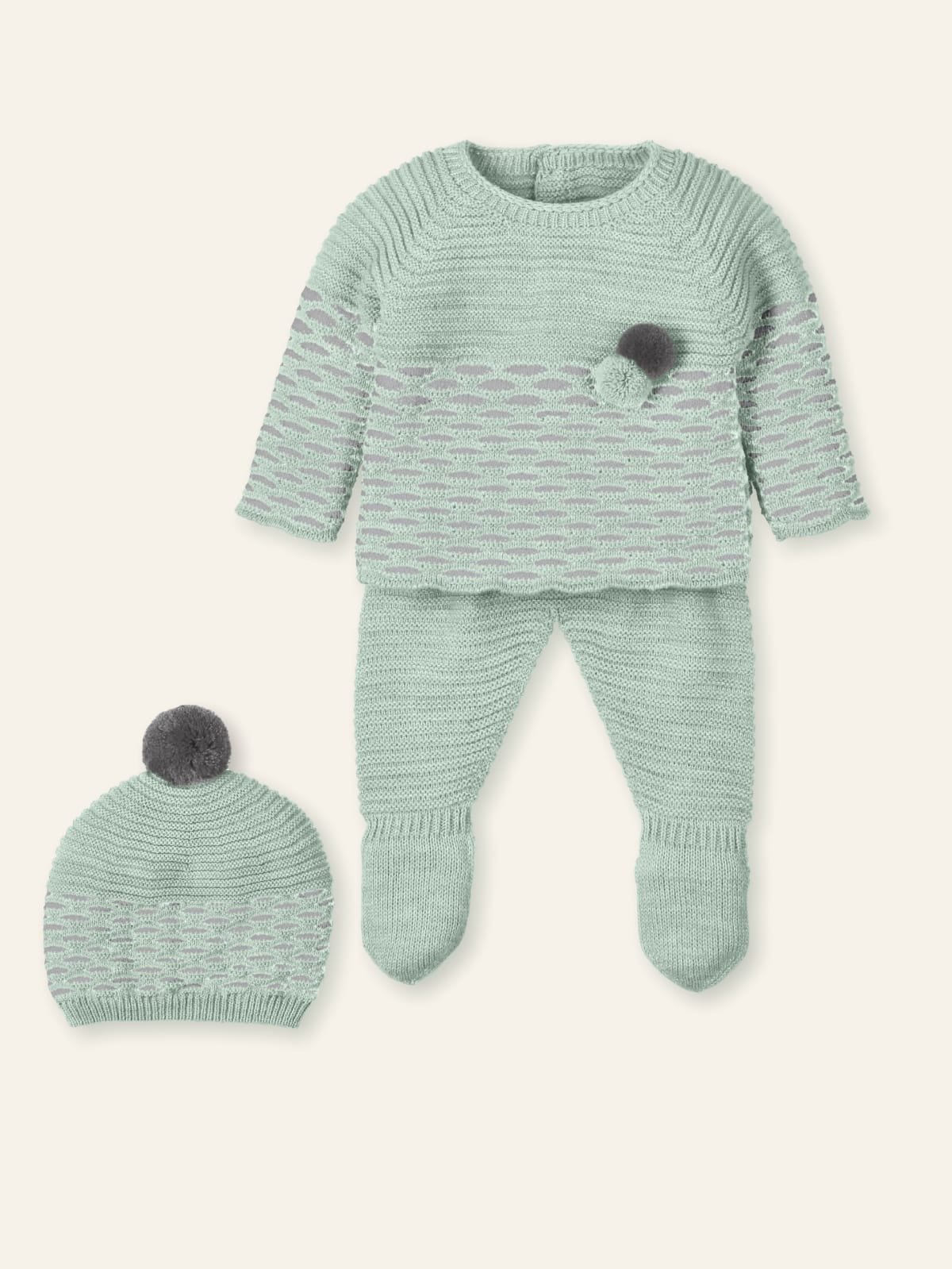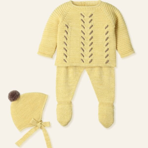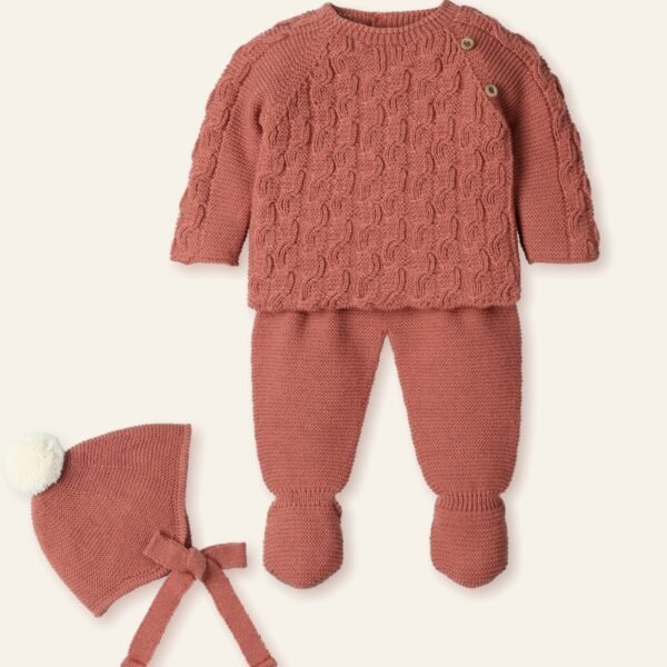 Viste a tu bebé con la ternura y el confort inigualable de Mac Ilusión. El conjunto de punto «Pompom» es una prenda esencial para la canastilla de tu recién nacido, combinando la calidez del punto de alta calidad con un diseño clásico y adorable en un vibrante y alegre color.