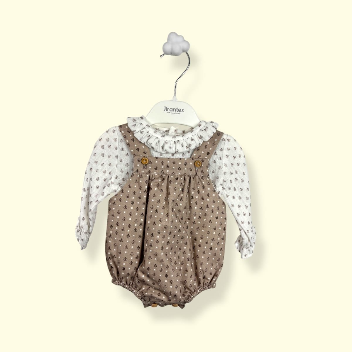 • Corte Evolutivo: Tirantes cruzados en la espalda con botones ajustables que permiten adaptar la prenda al crecimiento de tu bebé.