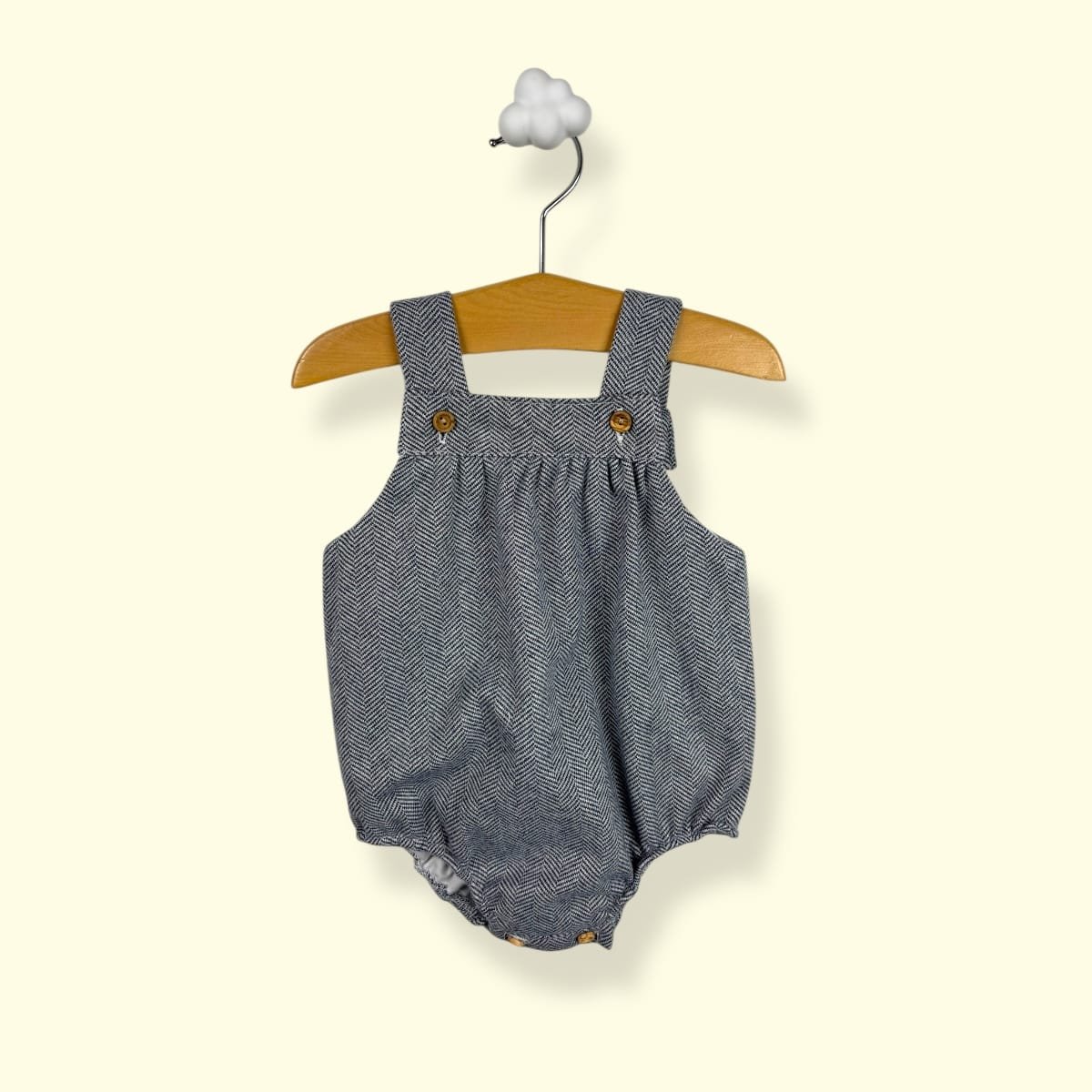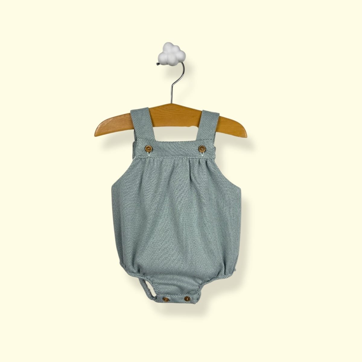 • Corte Evolutivo: Tirantes cruzados en la espalda con botones ajustables que permiten adaptar la prenda al crecimiento de tu bebé.