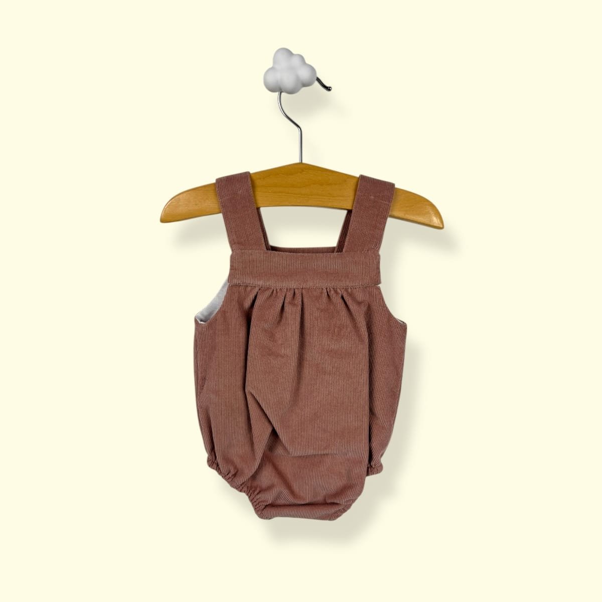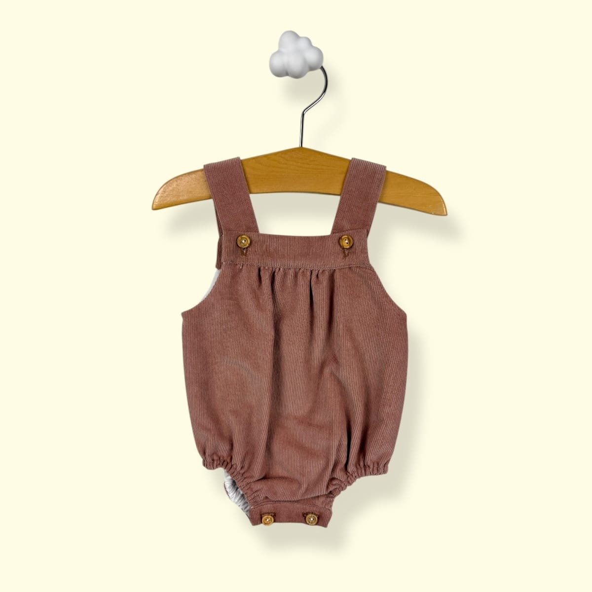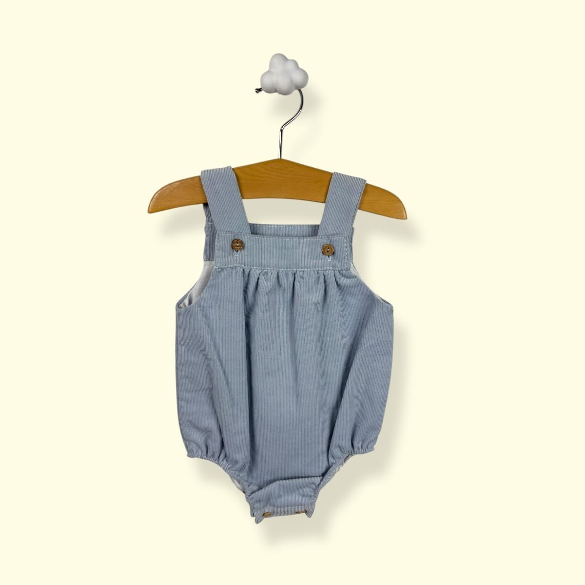 • Corte Evolutivo: Tirantes cruzados en la espalda con botones ajustables que permiten adaptar la prenda al crecimiento de tu bebé.