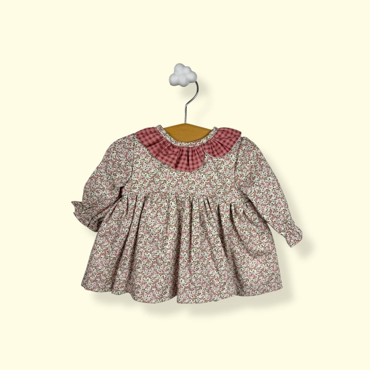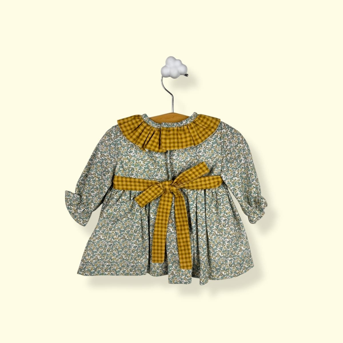 Este vestido ha sido diseñado pensando en la delicadeza de los primeros meses, combinando un tejido clásico con un patrón cómodo y favorecedor.
